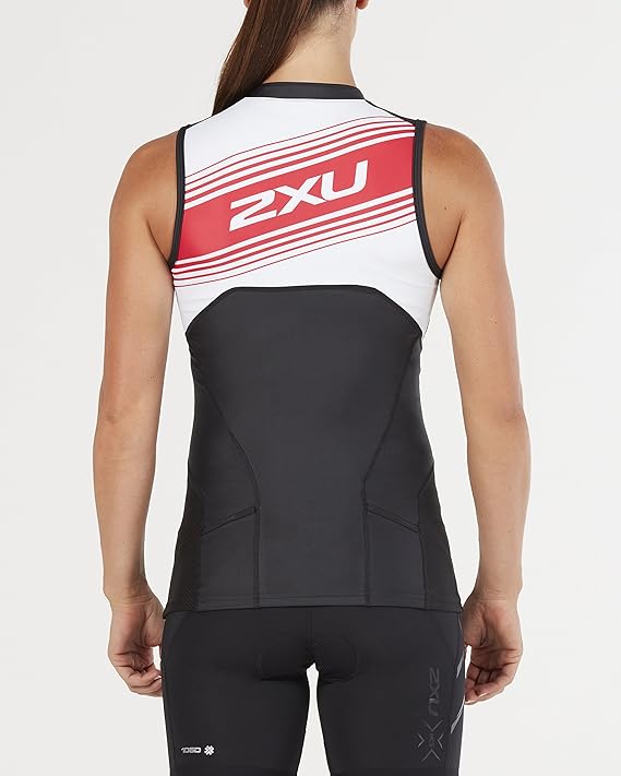 2XU Compression Tri Singlet, Damen, Black/Watermelon Lines