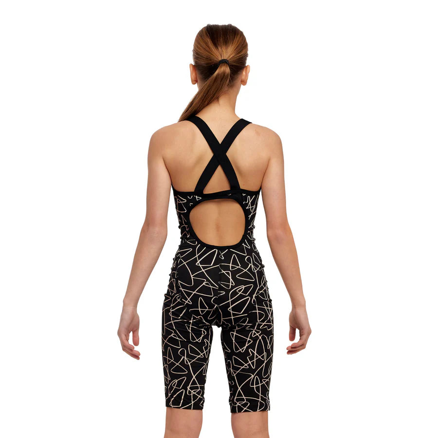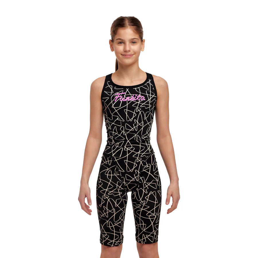Fast Legs ist der perfekte Funkita Trainingsanzug mit voller Abdeckung der Oberschenkel und breiten elastischen Schulterträgern für außergewöhnlichen Komfort und Halt bei deinem Schwimmtraining. Die Paneele sorgen für einen perfekten, knitterfreien Sitz am Körper. Für eine engere Passform beim Rundenschwimmen eine Größe kleiner als die normale Funkita-Größe wählen.