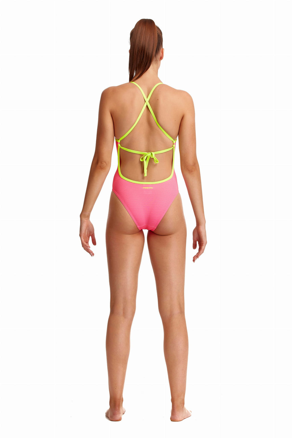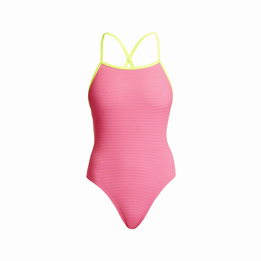 Der Tie Me Tight Badeanzug von Funkita lässt sich im Rücken schnüren, wie ein Bikini damit du die beste Passform und den höchsten Komfort für dich persönlich finden kannst. Dank des chlorbeständigen C-Infinity Gewebes halten die Farben besonders lange.