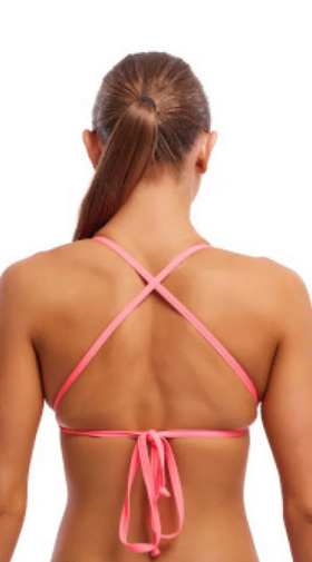 Die schmalen Träger des Funkita Tri Top Bikinioberteils verlaufen über Kreuz und werden im Rücken gebunden. Der Brustbereich ist dreieckig ausgeschnitten und hat ein elastisches Unterbrustband, wodurch das Top besonders gut sitzt. Zu diesem Angebot gehört nur das Oberteil, die Hose wird separat verkauft.