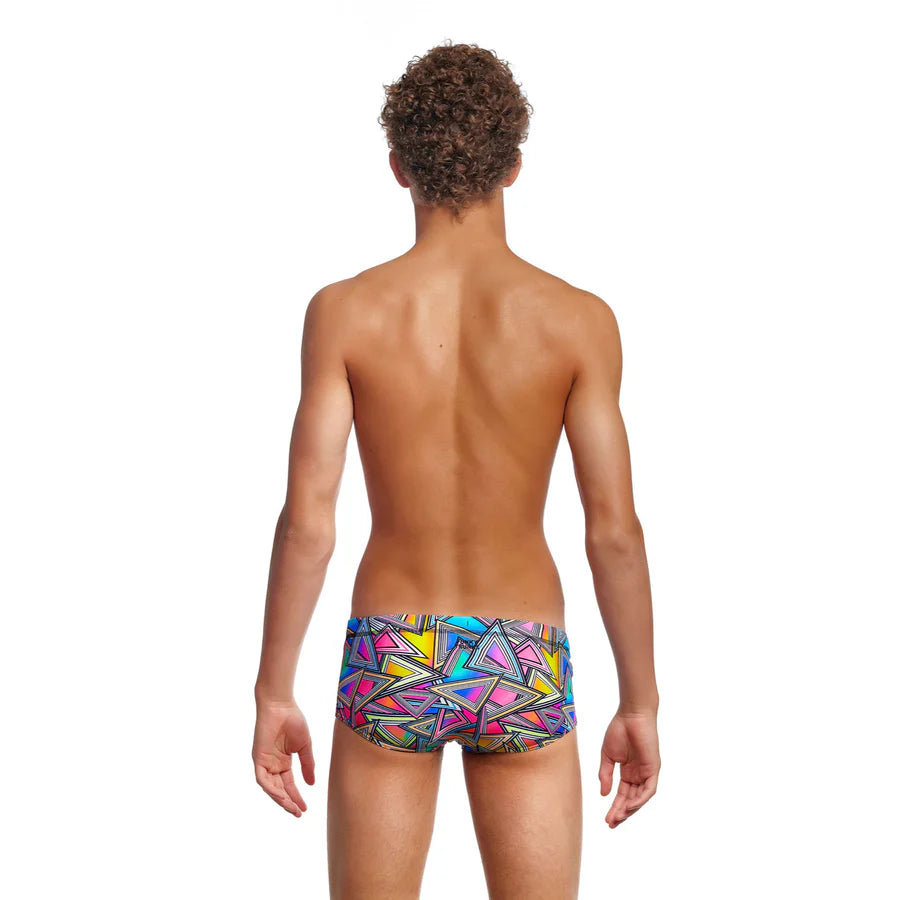 Der Name sagt schon alles! Die Classic Trunks ist DIE klassische Jungen Badehose von Funky Trunks für dein Schwimmtraining. Das flache Bündchen ist elastisch und für zusätzlichen Komfort kannst du die Hose noch mit dem eingearbeitetem Kordelzug fixieren. Die Seitenlänge beträgt 16,5 cm (bei Größe M). Damit deine neue Badehose auch zu 100% blickdicht ist, ist im Frontbericht ein zusätzliches Futter eingearbeitet.