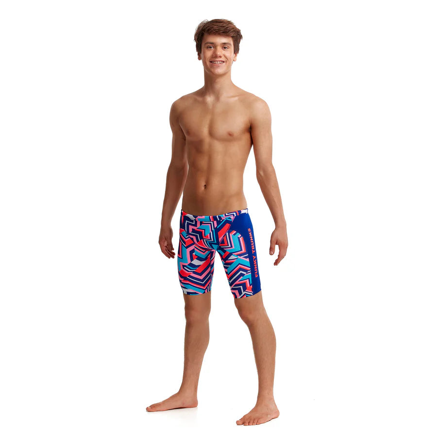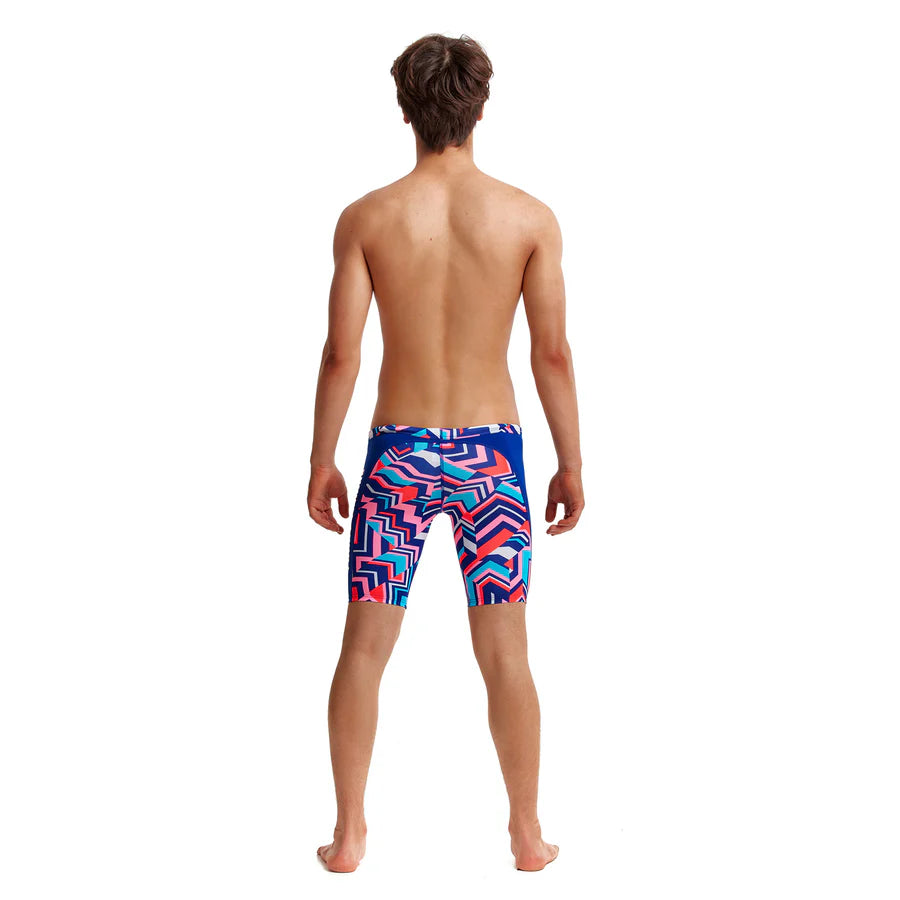 Der Trainingsjammer von Funky Trunks ist eine beliebtes Modell für Schwimmer und Triathleten. Die Nähte sind extra flach, die Beinöffnung ist bequem geschnitten und für besseren Halt gibt es im Bund einen Kordelzug. Durch das verwendete, chlorbeständige C-Infinity-Gewebe, bleibt der Jammer so strahlend wie am ersten Tag.