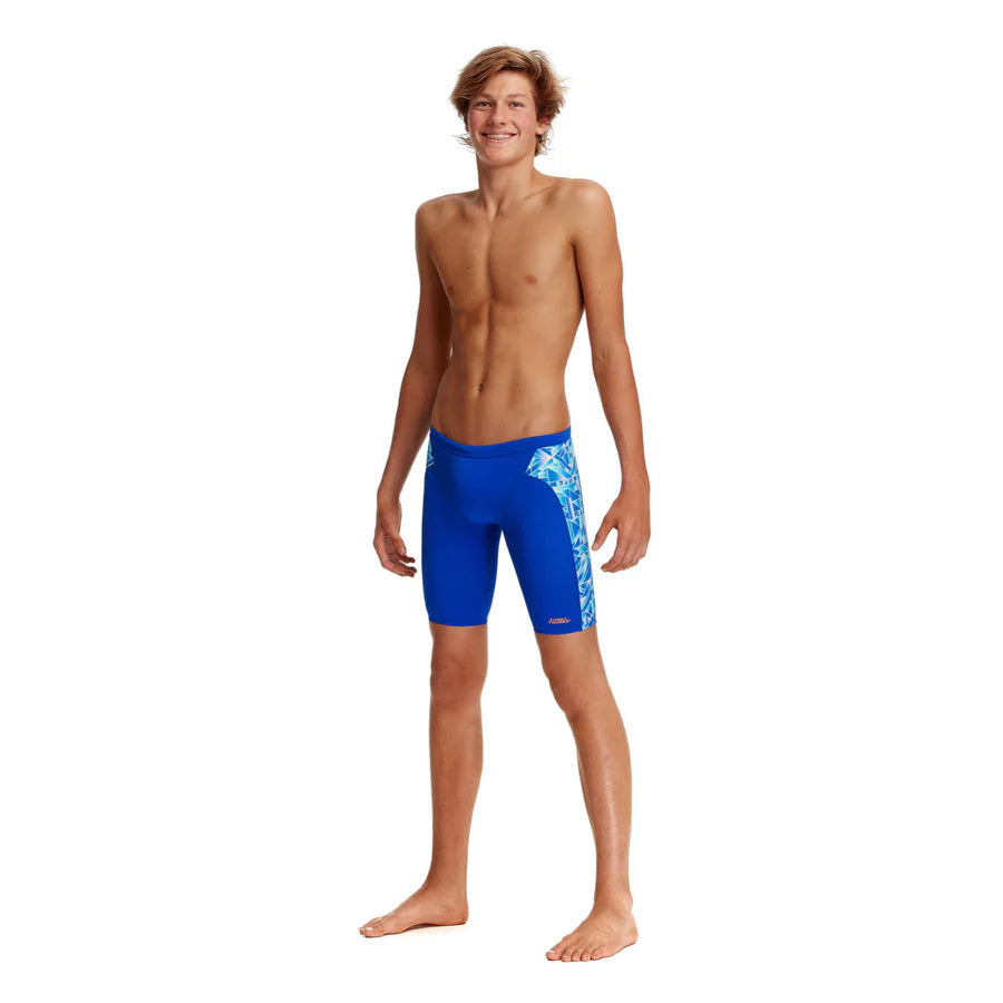 Der Trainingsjammer von Funky Trunks ist eine beliebtes Modell für Schwimmer und Triathleten. Die Nähte sind extra flach, die Beinöffnung ist bequem geschnitten und für besseren Halt gibt es im Bund einen Kordelzug. Durch das verwendete, chlorbeständige C-Infinity-Gewebe, bleibt der Jammer so strahlend wie am ersten Tag.